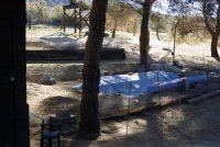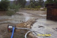 It's the season for being thankful. We want to express gratitude to our special adoptive parents who sent their love, best wishes, and donations after the devastating fire in June. As many of you know, we came frighteningly close to losing the Center when a fire storm swept through Morongo Valley. We were able to safely evacuate the animals as the valiant fire fighters worked tirelessly to save our sanctuary. We had just caught our breath and begun repairs on the damaged structures when the rains came. The fire left the hillsides around the Center bare and vulnerable. The unprecedented rain caused rivers of water to flood the lower acreage and our workshop with 3 feet of water. We used a "trash" pump to divert much of the water, but the sheer volume of run off swamped our workshop, tools, and equipment.