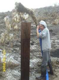 After the temporary delay due to the fire and flood, we have resumed work on the new meerkat enclosures. We finished laying the galvanized mesh floor, rented a backhoe to fill the enclosures with hard substrate that the meerkats will use to dig burrows, set the large boulders on cement platforms to prevent the meerkats from undermining them, and set numerous cement pilings to support the walls and roof. The square footage of each enclosure is almost double the size of the main cottage at the Center. We look forward to the "house-warming" party when the meerkats are in their new "digs."