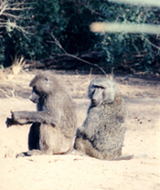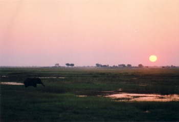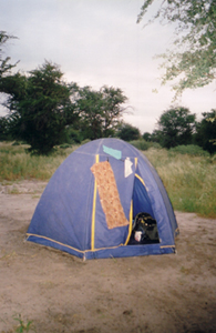 However, there were "unplanned events," too. And those, in hindsight, may prove to be the most cherished and memorable of all: Our truck got badly mired in the mud, we had a tire puncture in the midst of a testy herd of elephants, and I, unwittingly, tried to shower with a large puff adder. A hyena opened the truck's tailgate and left enormous teeth marks in the metal freezer. That same hyena also tried to get into my tent for a package of gum and, for his efforts, received a thump on the nose from my trusty paperback book through the nylon tent. I survived a mokoro boat ride as we skirted a few cranky, submerged hippos. The baboons and vervet monkeys outsmarted us, robbed us, and then laughed at our misfortune. A herd of buffalo stampeded through our camp and a freak electrical storm "fried" some wires and locked us out of our truck. We endured pesky tick and mosquito bites and, then, trekked through the dangerous terrain of Tsodilo Hills, the sacred home of the Bushmen. And, we experienced the ineffable joy and fear of seeing our small, neat footprints overlaid by paw prints every morning.