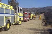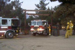 The fire fighters bedded down just outside our gates and watched for hot spots throughout the night. The air was still pungent with smoke and ash, and the fire, still out of control, was an eerie, jagged glow on our hillsides. We were concerned that the erratic winds would deliver the fire to our property again.