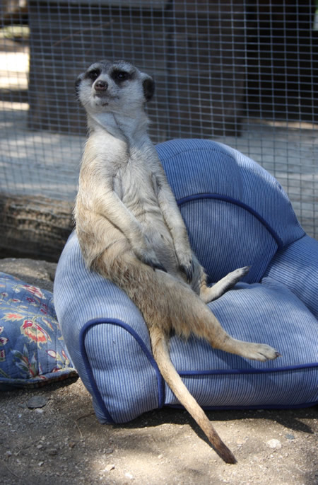 Our donors, very lovingly, make donations to care for the meerkats at Fellow Earthlings’ Wildlife Center. We do not have any paid staff so 100% of all donations and the proceeds from the sale of our merchandise go exclusively to caring for our winsome residents. We are, of course, very grateful to you. But, the meerkats are even more appreciative. The meerkats show that gratitude by putting on a “real show” for the donors who visit the sanctuary. Meerkats have many “nicknames,” but the one we think is most appropriate is little “STAND UP COMEDIANS.”