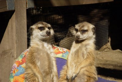 "Take Two!" The door to the enclosure ramp was opened and the meerkats came racing out - right on cue. But, instead of running toward the camera, they simply turned around and raced right back the way they'd come. We called this "Take Two - It's the journey, not the destination."
