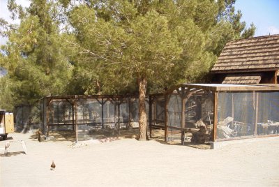 Rooster Cogburn, (lower left corner) our resident building inspector, gives his "beak of approval" to the newest enclosure Photo credit: D.A. Robertson