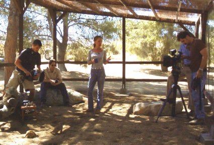 Pam Bennett-Wallberg gives a meerkat briefing to the Today Show film crew prior to "Take One!"